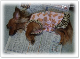 多分パピーの頃にブリーダーさんとこで新聞紙が敷いてあったからじゃないかなってパパと言ってたんやけど、sakiちゃんもそうなのかなぁ。