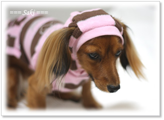 早速、sakiに着てもらったよ~。帽子かぶせたらフリーズ気味だったけど…