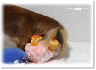 saki、食べ物には目もくれず、またおもちゃGETして大喜びしてたよ~